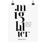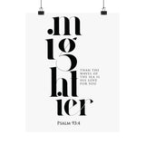 Faith Culture Mightier Psalm 93:4 Christian Matte Poster | Minimal Scripture Wall Art Print