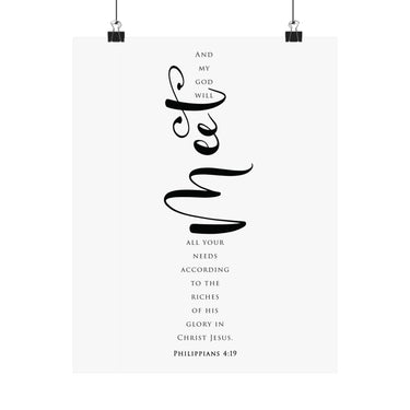 Faith Culture My God Will Supply Philippians 4:19 Christian Matte Poster | Provision Scripture Wall Art Print