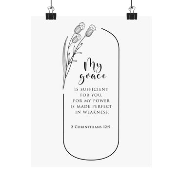 Faith Culture My Grace Is Sufficient 2 Corinthians 12:9 Christian Matte Poster | Minimal Floral Scripture Wall Art Print
