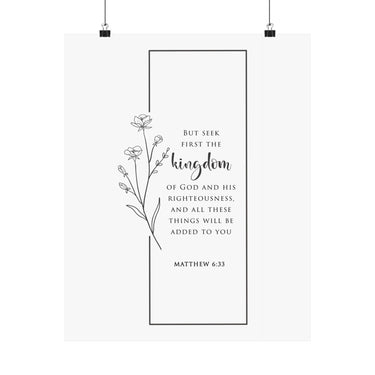 Faith Culture Seek First Matthew 6:33 Christian Matte Poster | Kingdom First Scripture Wall Art Print