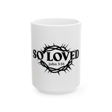 Faith Culture - So Loved John 3:16 Ceramic Mug – White | Crown of Thorns Christian Coffee Mug (11oz, 15oz)