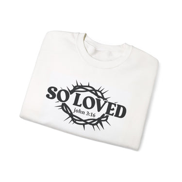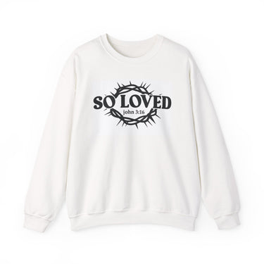 Faith Culture - So Loved John 3:16 Crewneck Sweatshirt – White | Crown of Thorns Christian Fleece Pullover