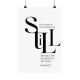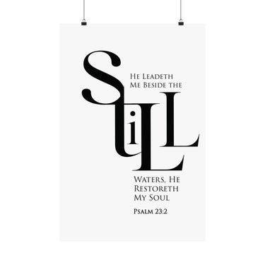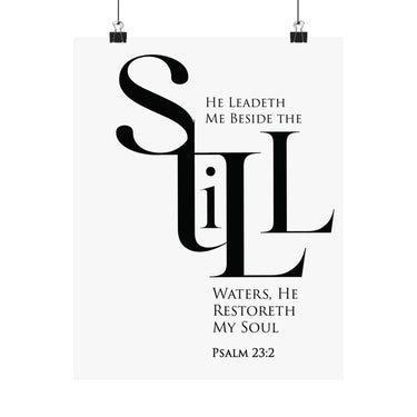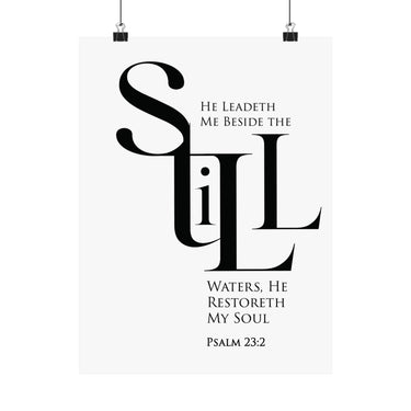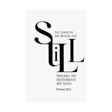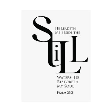Quiet and restorative, this matte vertical poster features Psalm 23:2: “He leadeth me beside the still waters, He restoreth my soul.” The black and white statement typography brings peace to bedrooms, bathrooms, reading nooks, and prayer corners. A thoughtful gift for healing seasons, burnout recovery, and anyone craving God’s rest. Museum grade paper and giclée printing keep the design crisp, while the matte finish stays soft and glare free. Available in 8 sizes.
