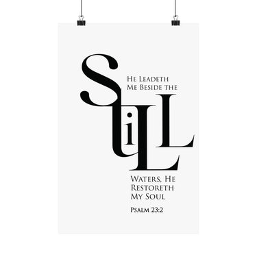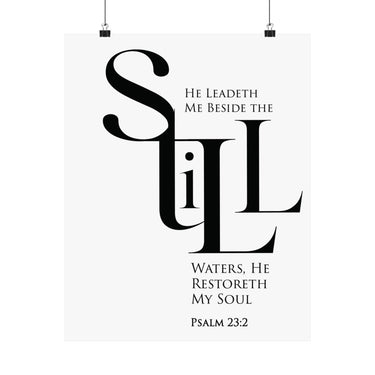 Faith Culture Still Psalm 23:2 Christian Matte Poster | Minimal Typography Scripture Wall Art Print