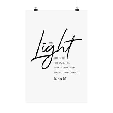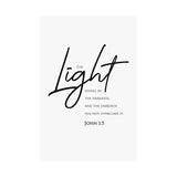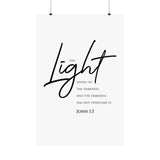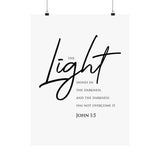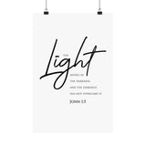 Faith Culture The Light Shines in the Darkness John 1:5 Christian Matte Poster | Minimal Scripture Wall Art Print