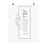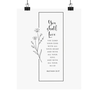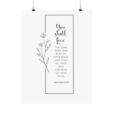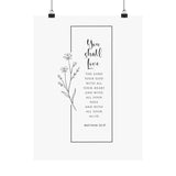 Faith Culture You Shall Love The Lord Your God Matthew 22:37 Christian Matte Poster | Minimal Floral Scripture Wall Art Print
